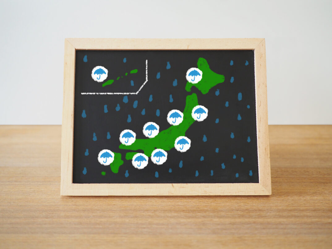 「梅雨前線」は長雨を引き起こす空気の境目のことで、「梅雨」とはその境目が日本付近にとどまり続けることで生まれる雨の多い季節のことを指します。